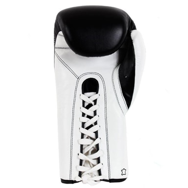 GLORY professionella boxhandskar i äkta läder med snörning. Vaddering tillverkad i injicerat formskum samt tagel. Handflatan är stoppad med polyesterskum och har en stel manschett för extra komfort. Traditionell snörning.