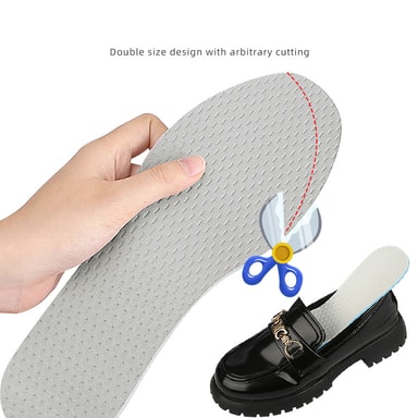 Anpassningsbar passform: Dessa skoinlägg är designade med en dubbelstorleksfunktion och kan enkelt trimmas för att passa dina skor perfekt. De markerade riktlinjerna säkerställer exakt skärning, vilket ger en anpassad passform för optimal komfort och stöd.