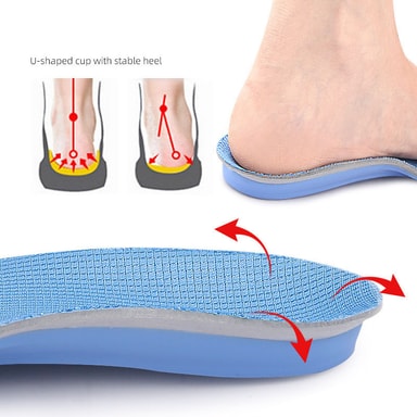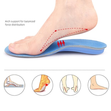 Ergonomiskt bågstöd: Dessa innersulor är designade med en djup hälkopp och mellanfotsstöd för att ge utmärkt fotvalvsstöd och lindra smärta i samband med plattfot, plantar fasciit och överpronation. De hjälper till att fördela trycket jämnt, förbättrar balansen och hållningen.