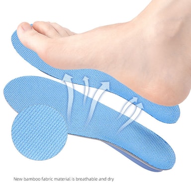 Andningsbar och bekväm: Tillverkade med andningsbar bambukolfiber, dessa innersulor främjar luftcirkulationen och håller dina fötter svala och torra hela dagen. EVA-materialet ger dämpning och stötdämpning, vilket ökar komforten under gång, löpning eller stående.