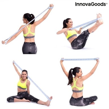 Ett elastiskt fitnessband för stretching som hjälper till att stärka och tona musklerna, att utföra och korrigera ett antal positioner, för att förebygga och rehabilitera skador etc. Tack vare dess ursprungliga multifunktionella och multipositionsdesign kan den användas i en mängd olika aktiviteter (träning, yoga, pilates, gymnastik, etc.). Den kan användas för en mängd olika övningar för en komplett träning av hela kroppen (magar, armar, ben, rumpa, bröst, midja, axlar, rygg, etc.). En av dess stora fördelar är att den är gjord av flexibelt, motståndskraftigt och mjukt tyg, vilket gör det mycket bekvämare och behagligare än gummi- eller plastresårband. Dessutom är den halkfri och ger ett stadigt grepp. Detta ergonomiska och elastiska band för både män och kvinnor är mycket mångsidigt och kan användas inomhus eller utomhus, vilket gör det idealiskt för att hålla sig i form hemma. Den har 8 grepphandtag för att styra intensitetsnivån för övningar och stretchningar, anpassad till önskad motståndsnivå (max. 15 kg). Den kan lätt rullas ihop för att ta minimalt med utrymme, den är lätt, bärbar och lätt att transportera och förvara. Den kan tvättas för hand för att hålla den ren. Träningsguide ingår. - Material: Polyester, Latex - Färg: Blå, Grå - Träning och fitness: Stort utbud av träningsövningar - Motståndsnivå: Upp till 15 kg - Har olika användningsområden och utrymmen: För användning inomhus och utomhus - Lätt och praktisk: Robust och hållbar - Lätt att rengöra: Handtvätt - Originell och flyttbar: Enkel att transportera och förvara - Mått ca: 91 x 3,7 x 0,1 cm