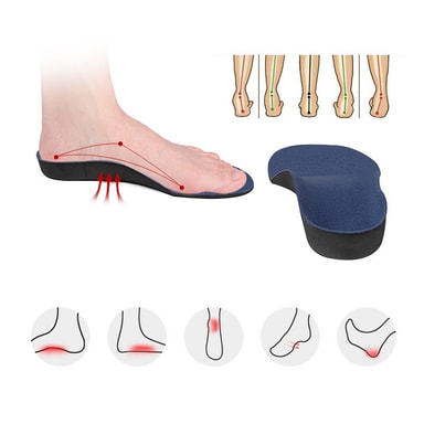 Utmärkt stöd för hålfoten: Dessa skoinlägg är utformade med ett konturerat hålfotsstöd som ger utmärkt stöd och stabilitet för dina fötter. Detta hjälper till att lindra smärta och obehag som orsakas av platta fötter, plantar fasciit och andra fotproblem.