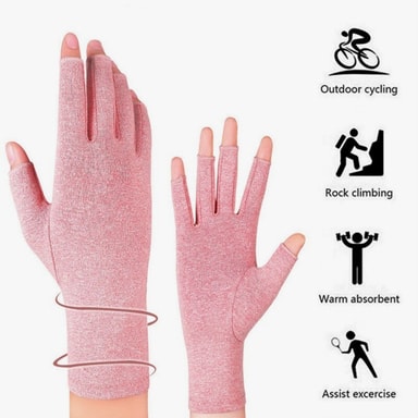 Kompressionshandskarna lugnar ömma, värkande senor, muskler och leder för att effektivt lindra artritsmärta genom att minska stressen på tryckpunkter i fingrar, händer och handleder. Fingerlös design, bekväm att bära.