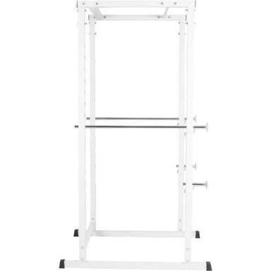 Power Cage är en skivstångsställning utformad som en bur och är för dig som på ett säkert sätt vill kunna träna tungt med skivstång på egen hand. 15-vägs justerbar rack för skivstång Maximal belastning på 200 kg Med denna bur kan du maxa din träning och ändå minimera riskerna för skador. Detta tack vare den stabila kontruktionen och dess robusta skyddsmekanism som du enkelt ställer in efter längd och övning. Träna knäböj, marklyft, kronlyft, axelpress, skivstångsrodd, pull ups eller hängande benlyft. Går även att kombinera med en träningsbänk för att kunna träna tex bänkpress. Övrig information Maximal belastning rack: 50kg vardera, totalt 100kg Avstånden mellan hål för rack: 9cm Justerbara höjd rack: 53-178cm Manual medföljer