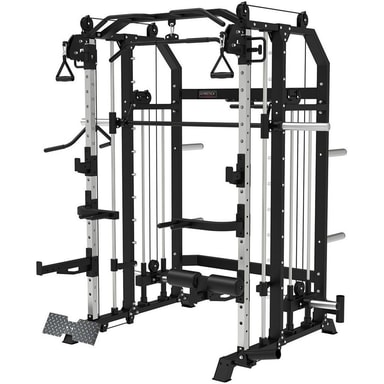 Gymstick Multi Smith PRO10.0 ger samma olika träningsmöjligheter som PRO20.0. Stationen kombinerar en smith-maskin, ett squat-stativ och en kabelstation i ett. Bred uppsättning tillbehör och kabelhandtag för verkligt mångsidiga träningspass.Läs mer om produkten