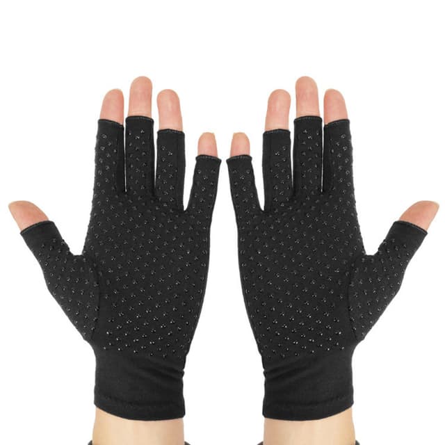 Kompressionshandskarna lugnar ömma, värkande senor, muskler och leder för att effektivt lindra artritsmärta genom att minska stressen på tryckpunkter i fingrar, händer och handleder. Fingerlös design, bekväm att bära.