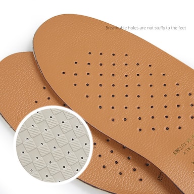 Andas Och Är Bekväma: Dessa innersulor är tillverkade av premium kohudläder och erbjuder exceptionell andningsförmåga, vilket håller dina fötter svala och torra hela dagen. De naturliga fibrerna möjliggör utmärkt luftcirkulation, vilket förhindrar uppbyggnad av fukt och lukt.