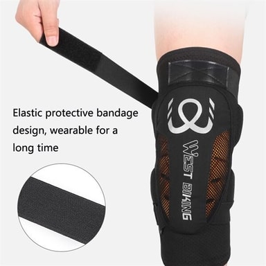 Skydd mot knät Det här knäskyddet ger stöd åt knäleden vilket underlättar när det är belastat under rörlighetsövningar exempelvis. Den är fukttransporterande med en hög elasticitet samt väger den lite så att den passar utmärkt till bland annat basket, badminton, löpning, bergsklättring och andra liknande aktiviteter. - Passar till: Högerknät - Material: Lycra/PU - Storlek: ungefär 20x13 cm - Vikt: ungefär 251 g - Färg: Svart