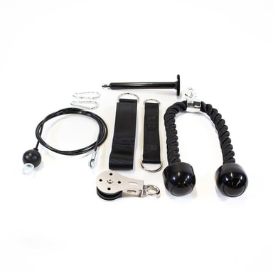 Pulley system som gör att du kan träna som på gymmet fast hemma. Systemet går att fästa på många vis, exempelvis i ett chinsräcke, trappen eller takbjälken. Systemet håller alla sorts viktskivor över 21 mm Ø.Läs mer om produkten