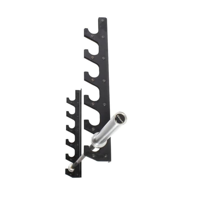 Med Livepro Wall Mount Rack kan du enkelt hålla koll på alla dina skivstänger genom att hänga upp dem på väggen. Det sparar plats jämfört med en ställning som står på golvet. Väggställningen kan bära upp till sex skivstänger och passar alla gym och studios som vill hålla det snyggt och stilrent. Konsolerna har också en hylsa av PVC som skyddar stången och ställningen från stötar och repor. Livepro Wall Bracket passar alla sorters skivstänger, dvs. 20kg olympic rods, 15kg-stänger, korta stänger, övningsstänger i aluminium och flera andra specialstänger. Arrangera skivstängerna i bättre ordning än de någonsin har varit och visa upp dem tydligt för att förbättra användarupplevelsen. Specifikationer Vikt: 150 kg Längd: 98 cm
