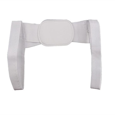 Hållningsstöd för ryggen Justerbart och bekvämt stöd med övre ryggen för män & kvinnor som hjälper dig att förbättra en dålig kroppshållning. Bortsett från bättre hållning så kan den ökar andning och kroppsinriktning och du kan bli av med rygg-, axel-, nacke- och ryggsmärta. Efter ha använt den ett par gånger kommer det kännas naturligt och du känner inte att du har den på dig. Kommer hjälpa dig så du slipper att stå eller sitta med krökt rygg när du arbetar. Väldigt lätt material och slimmad - syns inte att du har stödet på dig under kläderna. Hållningsstödet är ställbart, bara att justera för din rygg! Storlek: Large - Vikt ca 61-85kg Material: Polyester