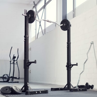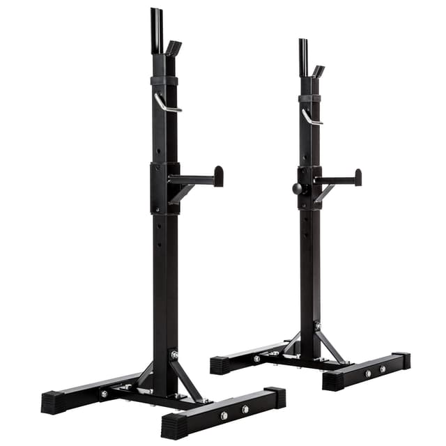 Denna robusta och stabila skivstångsställning passar utmärkt till ditt hemmagym. Skivstångsstativet är justerbart i höjd och idealiskt för nästan alla kroppsstorlekar. Tillsammans med en skivstång kan övningar för bröst-, rygg- eller benmuskler utföras. Missa inte den härliga skivstångsställningen från tectake som passar perfekt som en permanent del i ditt hemmagym.
