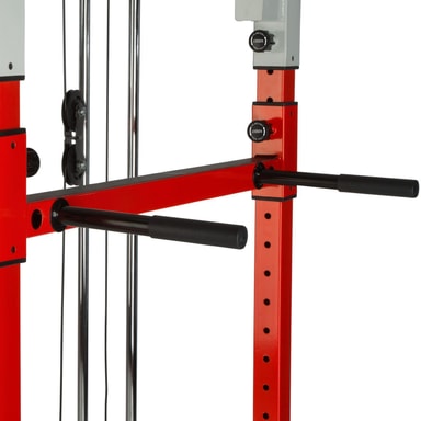 Träna hela kroppen hemma med ditt nya hemmagym från tectake. Chins, knäböj, bänkpress och dips. Träningsmöjligheterna med detta funktionella hemmagym med chinsställning, dubbel chin up stång, löstagbara dipstänger och hållare för långhantlar är nästan obegränsade. Två massiva säkerhetsstänger, justerbara i höjd, ger bästa möjliga säkerhet och stabilitet i varje övning. Den robusta stålramen kan utan problem hanteras av en person. Inred ditt eget gym och träna ostört på den tid som passar dig bäst med det professionella hemmagymmet från tectake.