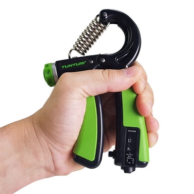 Med denna Tunturi justerbara handtränare kan du enkelt träna dina hand- och armmuskler. Allt du behöver göra är att klämma fast handtaget och upprepa det så ofta du vill. Handtaget har en inbyggd räknare som håller koll på antalet repetitioner så att du kan fokusera din uppmärksamhet någon annanstans. Till exempel tittar på tv eller ringer ett telefonsamtal. Motståndet kan justeras till allt mellan 10 och 40 kg. Detta görs med en speciell motståndsknapp. Så du kan själv bestämma hur tung du vill ha den.