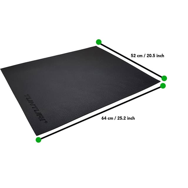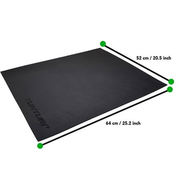 Ska du köpa en minicykel? Så tänk på ditt golv och bord också! Tunturi skyddsmatta säkerställer skydd av golvet eller bordet men även med ljuddämpning. Du behöver inte oroa dig för ditt golv, bord med Tunturi skyddsmatta! Lämplig för minicyklar. Mattan är gjord av svart gummi och mäter 64 x 52 x 0,4 cm.