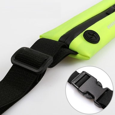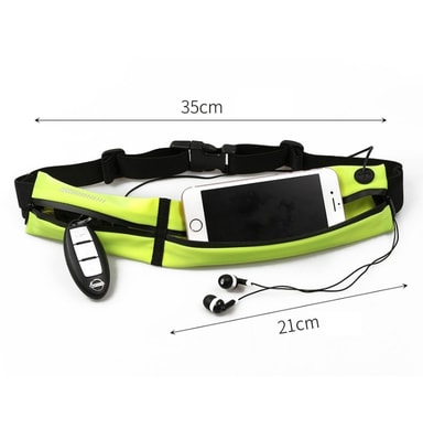 Otroligt slimmad midjeväska som ändå rymmer mer än vad man tror. Midjeväskan är uppdelad i två expanderbara fack. I den ena kan du förvara din mobiltelefon och i den andra t ex nycklar, betalkort, hörlurar eller något annat av det mest nödvändiga du behöver ha med dig. Väskan passar till alla typer av mobiltelefoner och är vattentät och svettresistent. Du justerar enkelt midjebältet efter din storlek och stänger den enkelt med plastspännet. En bekväm och smidig lösning när du är ute på löprundan och träningskläderna saknar fickor!