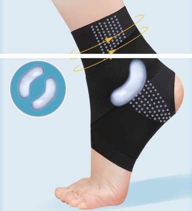 Premiummaterial: Tillverkat av högkvalitativ polyester och silikongel, erbjuder detta fotledsstöd hållbarhet, flexibilitet och komfort för hela dagen.