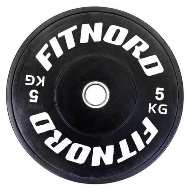 Tävlingsviktskiva Bumper Plate 5 kg, FitNord är en helt gummibelagd viktskiva med stålcentrum som lämpar sig till professionell användning. FitNord Bumper Plate –viktskivor är tillverkade av högkvalitativt naturgummi och passar särskilt väl för tyngdlyftningsövningar som crosstraining, där man lyfter vikterna från marken och låter dem falla ner på golvet. Tävlingsviktskivorna är färgade, vilket gör det lättare att hitta rätta viktskivor även i snabba träningspass. FitNord Bumper Plate viktskivorna är 450 mm i diameter och passar alla standardstänger på 50 mm. Vikten på skivorna motsvarar bra den angivna vikten, med en tolerans på mindre än 1%. OBS! Viktskivorna säljs styckvis.