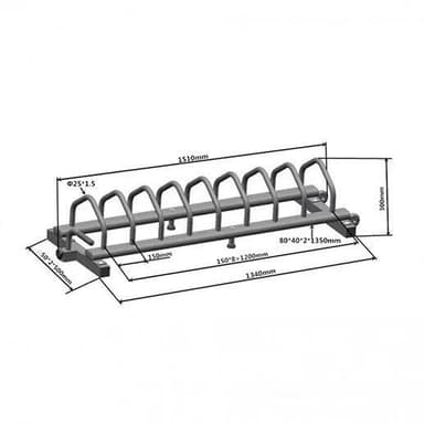 Liggande stativ på 147cm som tål en belastning på 400kg och erbjuder snygg förvaring av dina viktskivor med totalt åtta fack i samma bredd. Se bild för ytterligare mått.Läs mer om produkten