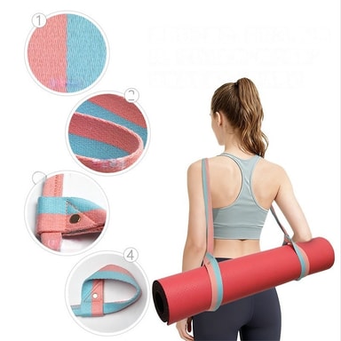 Handsfree och bekväm: Denna yogamatta rem ger ett enkelt och bekvämt sätt att bära din yogamatta. Frigör dina händer och förhindra att din matta rullar ut under transport. Perfekt för yogis på språng, denna rem gör det enkelt att ta din matta till studion, parken eller gymmet. De justerbara öglorna säkerställer en säker passform för de flesta mattstorlekar, vilket ger en bekväm och problemfri bärlösning. Den är också bra för att bära filtar eller strandmattor. Njut av friheten och bekvämligheten med handsfree bärning med detta viktiga yogatillbehör. Denna yogamatta bärare är ett måste för alla yogaentusiaster.