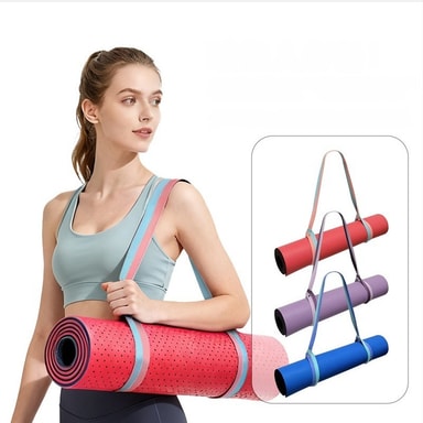 Universell kompatibilitet: Designad för att rymma 99% av yogamattans storlekar, är denna rem otroligt mångsidig. Oavsett om du har en tunn resematta eller en tjock studiomatta, kommer denna rem säkert att hålla den på plats. De justerbara öglorna gör att du kan anpassa passformen till din specifika matta, vilket garanterar ett tätt och säkert grepp. Inget mer kämpande för att rulla ihop din matta tätt eller oroa dig för att den glider ur dina händer. Denna yogamatta sling är den perfekta lösningen för att bära alla typer av yogamattor, vilket ger ett bekvämt och pålitligt sätt att transportera din matta vart du än går. Den är också lämplig för att bära andra rullade föremål som filtar eller handdukar.
