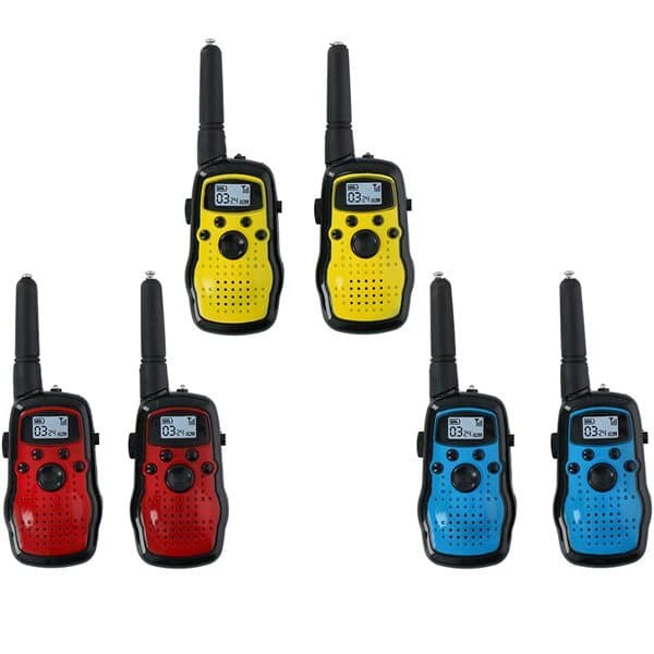 Walkie-talkies i färgglad design Med dessa walkie-talkies kan du kommunicera med någon på distans med ett enkelt knapptryck. Väldigt uppskattad leksak för barn att leka med både inomhus och utomhus, de har en räckvidd på ca 80 meter. - Divs på 2x 9V-batterier (ingår ej) OBS! Färger skickas osorterat