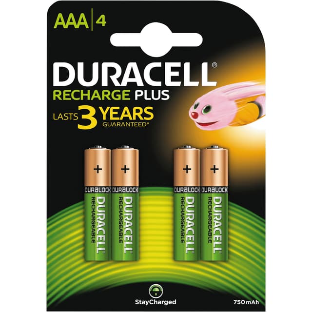 • Duracell Recharge Plus AAA 750mAh Batterier, 4-pack