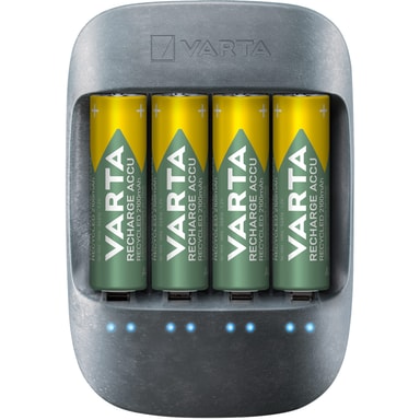 VARTA Eco Charger är försedd med 4xAA 1200mAh uppladdningsbara batterier och kan ladda 4 AA/AAA uppladdningsbara batterier med en global spänning på 100-240V. Laddaren är producerad av 50% bioplast. Förutom enskilda laddningskanaler som laddar cellerna enskilt och trickle charge funktion så har även Eco Charger omfattande säkerhetsfunktioner och känner även av defekta celler så att du tryggt kan ladda dina batterier. Den blå LED-belysta laddningsindikatorn visar tydligt laddningsstatus för dina celler.