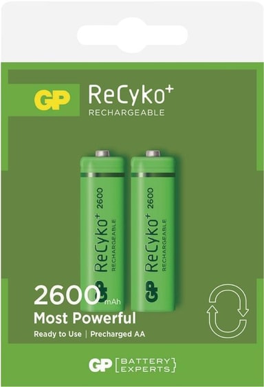 2-pack laddningsbara AA-batterier i hög kvalitet och lång livslängd.