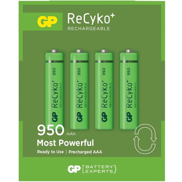 Med GP ReCyko vet du med säkerhet att du alltid har batterier hemma när du behöver. De är laddade och redo att användas direkt vid köp, precis som ett engångsbatteri, och med låg självurladdning kan de användas även efter att ha legat i en låda en längre tid. GP ReCyko fungerar utmärkt i strömkrävande enheter och kan laddas flera hundra gånger. Ett klimatsmart och ekonomiskt alternativ till alkaliska batterier, för att inte tala om hur många gånger du slipper gå till butiken för att köpa nya batterier!