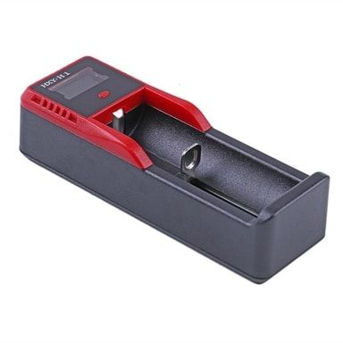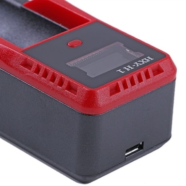Multiladdare för Batteri 18650 / 26650 / 18490 / 17335 mm En smart batteriladdare med ställbar fjäder som gör att laddaren kan ladda många olika batterier. Du har en LCD skärm för att se hur batterierna laddas Laddar snabbt upp dina batterier och är kompatibel med: 26650 18650 18490 17335 16340 10440 AA LR6 AAA LR3 Ingår USB-kabel med USB och Micro USB för laddning Storlek: 11,3cm x 3,8cm x 3cm Input DC 5C - 1000mA Output: 4,2V/3,65V/1,5V - 500mA/1000mA