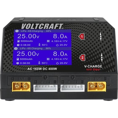 RC-batteriladdare 20 A VOLTCRAFT LiPo, LiHV, LiFePO, LiIon, NiMH, NiCd Temperaturövervakning2,4 tum IPS-LCD-display med 320 x 240 pixlar Temperatursensoranslutning stödjbara batterier: LiPo/LiHV/Life/LiLon/NiMH/NiCd energifördelning Flerspråkig