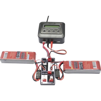 RC-batteriladdare 6 A VOLTCRAFT V-CHARGE 60 Combo LiIon, LiFePO, LiHV, LiPo, NiCd, NiMH Inkl. 2x LiPo-batterier, USB-laCellspänning i realtid (övervakar laddningstillståndet) Automatisk laddningsströmbegränsning jämnar ut celler vid urladdning av