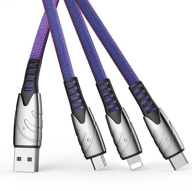 Med en multiladdare kan du ladda tre telefoner samtidigt, från samma USB-uttag. Laddaren har en USB-kontakt som sätts i datorn eller nätadaptern (ej inkluderat) och den förgrenar sig sedan till tre olika laddare med uttag för USB-C, Lightning och micro-USB. Den är liten och smidig att ta med sig på resor och andra tillfällen.
