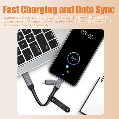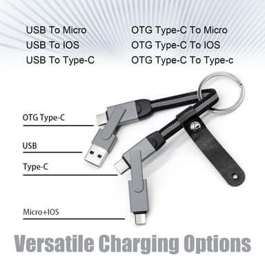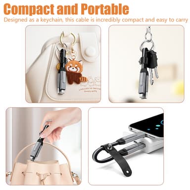 Kompakt och bärbar: Designad som en nyckelring, den här kabeln är otroligt kompakt och lätt att bära. Den tar minimalt med utrymme i fickan eller väskan, vilket säkerställer att du alltid har en laddnings- och dataöverföringslösning till hands.