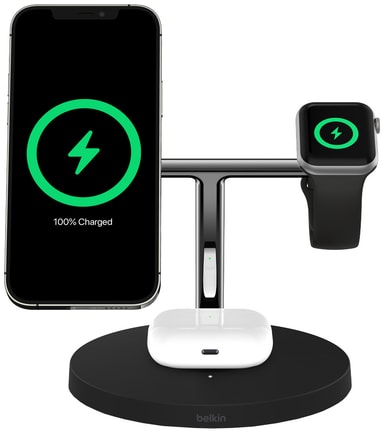 • Belkin BoostCharge Pro 3-in-1 trådlös laddare adapter (svart)