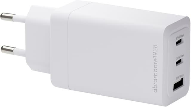Ladda din laptop, mobila enheter och tillbehör effektivt och bekvämt med dBramante 65 W väggladdare. Med en total effekt på 65 watt och 2x USB-C samt 1x USB-A-portar möjliggör den smart laddning av upp till 3 enheter samtidigt. Tack vare GaN-teknologin säkerställer den effektiv och högpresterande laddning, och för att undvika överhettning har den ett inbyggt skydd.