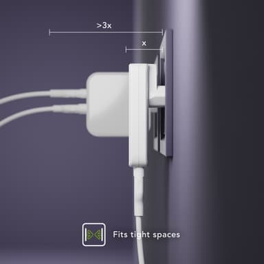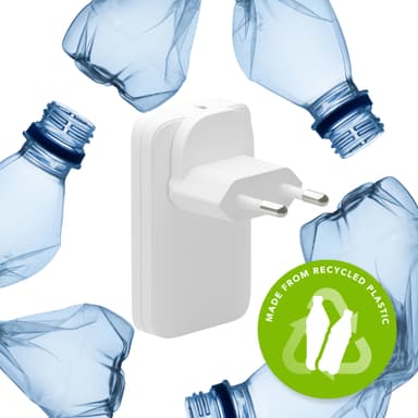 'dbramante1928 Recharge Pro laddare: ultratunn design, 20W USB-C, 18W USB-A snabbladdning med GaN-teknik, överhettningsskydd, dubbla kontakter och stöd för ledande strömprotokoll.'Läs mer om produkten