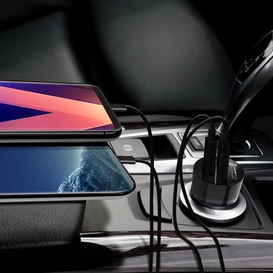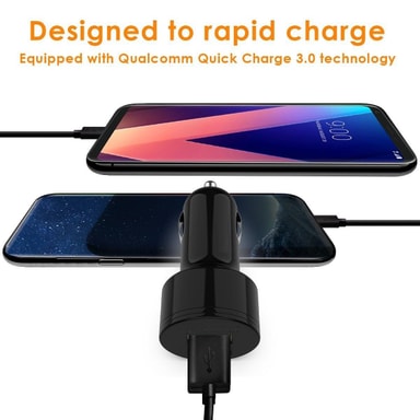 Snabbladdning i bilen: Billaddaren är utrustad med Quick Charge 3.0 för att snabbt ladda din Quick Charge-kompatibla mobil med snabbast möjliga hastighet (upp till 4x snabbare än konventionella laddare).