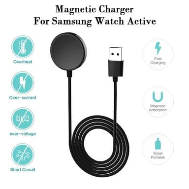 Trådlös laddningsstation: En laddare till Samsung Galaxy Watch som är smidig och enkel att använda. Det är bara ansluta laddningsdockan till en strömkälla med USB, som PC eller laptop, eller så ansluter du till ett vägguttag (väggadapter behövs, ingår inte). Klockan placeras sedan på laddplattan för trådlös laddning.