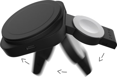 Ladda din telefon och klocka enkelt när du reser tack vare Zens Travel Charger Pro 2, som ger dig en MagSafe- och Qi2-kompatibel laddningsplatta för din telefon med upp till 15W laddningshastigheter samt en Apple Watch-platta.Läs mer om produkten