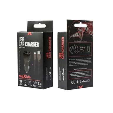 Maxlife MXCC-01 billaddare är perfekt för bilhållare med trådlös laddningsfunktion, navigation eller telefonladdning. Den har en USB-port med en laddningskapacitet på 2.1A. Produkten har optimala dimensioner, vilket gör den enkel att montera och demontera. Dess kompakta design stör inte föraren och är lätt att hantera, vilket bidrar till en bekväm och säker körupplevelse. USB till microUSB-kabel ingår.