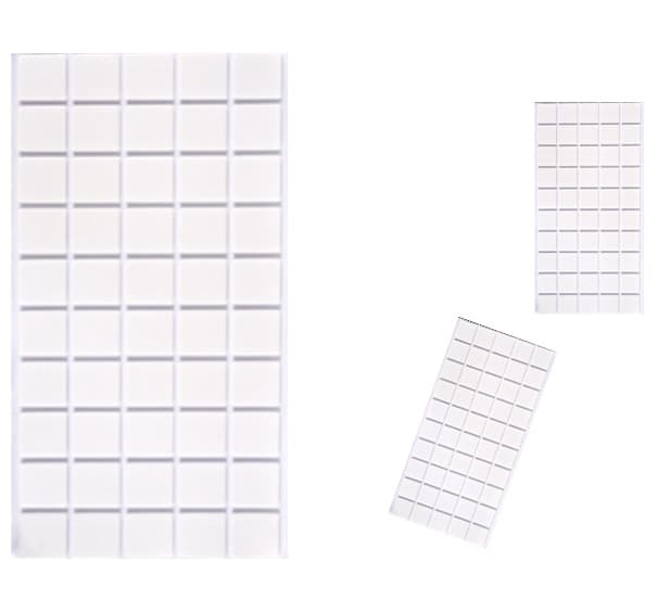 Vår dubbelhäftande tejpklistermärke finns i fyrkantiga former. Den kommer att fästa på nästan allt med en slät yta och är lätt att ta bort utan att skada ytan. Den lämnar inga rester efter avrivning.