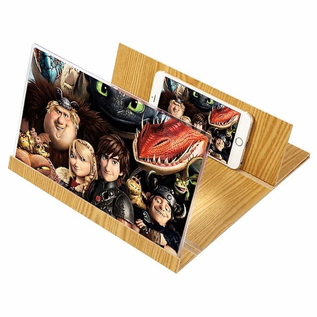 Passar för alla mobiler: Skärmbildförstoraren är utformad för att passa de flesta mobiler, så oavsett om du har en iPhone eller en Android-telefon så kommer förstoringsprojektorns skärm att fungera med din enhet. Den kan vikas ihop och har en dekorativ trädesign. Dessutom kräver ""förstoringsglaset"" till din mobil inget batteri och är lätt och smidigt att ta med sig.
