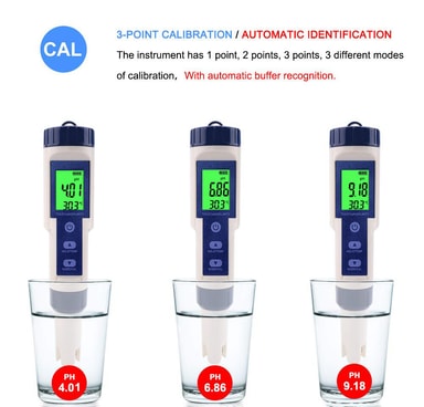 Multifunktionell digital pH-mätare: Vattenmätaren mäter inte bara pH-värdet utan även nivån på TDS, EC, salthalt och temperatur.
