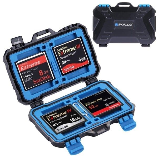 Förvaringsväska minneskort 9 i 1 vattentålig väska för att bära och förvara minneskort. Konvex design på skalet gör väskan mer ergonomisk och bekväm. Skalet har en kompakt design och de två avdelningarna låter dig lagra 2 cf + 2 sd kort + 2 microsd + 2 xqd kort och 3 sim(nano, micro och normal) obs: korten är inte inkluderade.