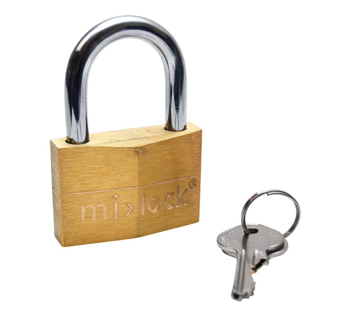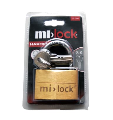 Hengelås i messing med herdet bøyle - inkl. 2 nøkler Mål: 60 mm Nøklekombinasjoner: 1024 Bredde: 60 mm. Høyde på bøylen: 31,5 mm. Innvendig bøylemål: 32,2 mm. Tykkelse på bøylen: Ø 9 mm Høyde på huset: 40 mm.Läs mer om produkten