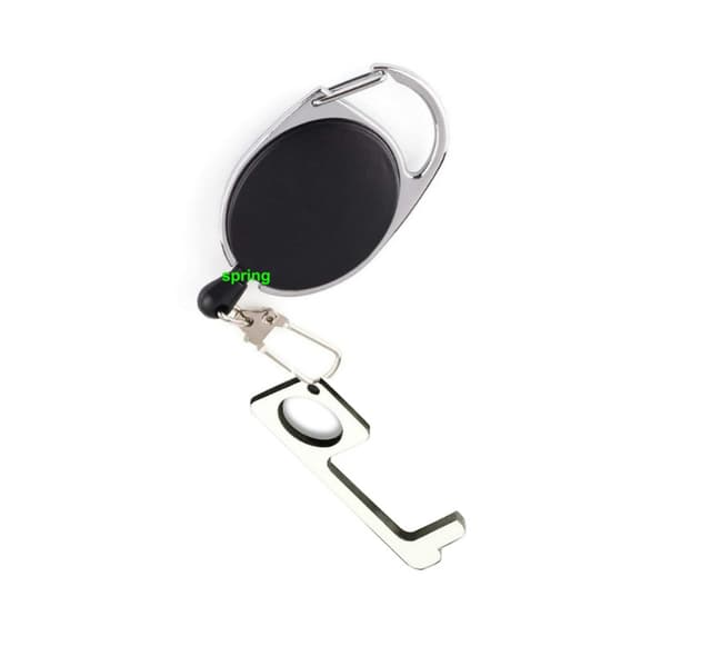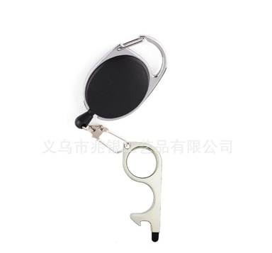 Hygienisk lösning: Denna nyckelringen har en infällbar klämma i svart-silver tillverkad av ABS och zinklegering. Den fungerar som ett beröringsfritt verktyg för att förebygga virus, minimerar direktkontakt med ytor och kan användas som en metalldörröppnare.