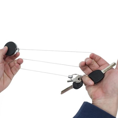 Utrustad med karbinhake: Nyckelringen är utrustad och designad med en 70 cm lång karbinhake som går att dra ut och dra in för praktisk och snabb användning och åtkomst av ägodelarna du fäster i hållaren.