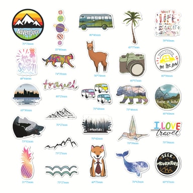 50 stycken klistermärken om utomhusäventyr i olika mönster, nästan icke-repetitiva. Dessa klistermärken är lämpliga för att dekorera de flesta föremål, du kan fästa dem på den plats du vill, iögonfallande och stilfulla.